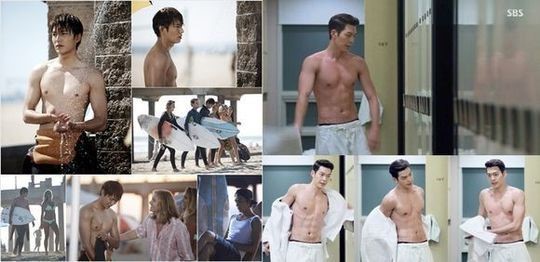 대표적인 것은 이민호와 김우빈 등 몸 좋은 배우들의 탈의. 또 탈의다. 주인공 김탄 역의 이민호는 첫 회부터 LA 해변을 배경으로 조각 복근을 뽐내더니 차은상(박신혜 분) 앞에서 티셔츠를 갈아입으며 또 다시 매끈한 보디라인을 드러냈다. 여기에 김탄의 적수 최영도 역 김우빈은 이민호보다 한층 부풀고 건장한 상반신을 드러내 여심을 훔쳤다. 상이한 매력과 캐릭터의 두 남자주인공은 상반신 노출신에서도 전혀 다른 아우라를 풍기며 시청자들의 눈을 호강케 했다. 이 장면들을 보며 가슴이 콩닥한 여고생들은 또 얼마나 많을까.