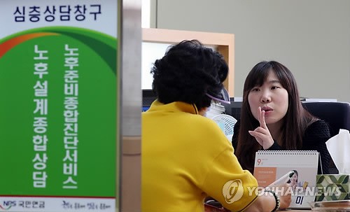 | 서울중구 충무로 국민연금공단 종로중구지사 종합민원실에서 한 중년 여성이 국민연금 관련 상담을 받고 있다. << 연합뉴스 DB >> |