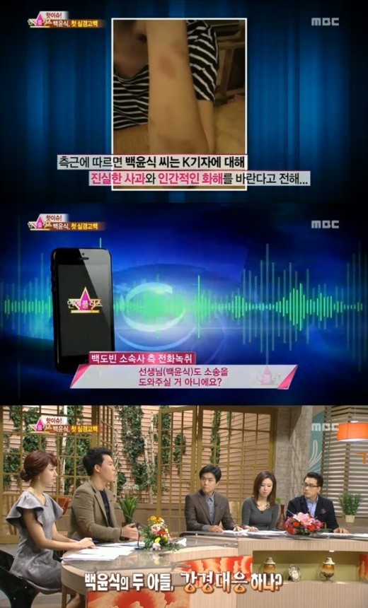 21일 방송된 MBC '기분좋은날'에서는 백윤식과 K기자의 사건에 대해 언급했다. 백윤식 측근은 "30세 연하 K모 기자의 인간적인 화해를 원한다"고 말했다.